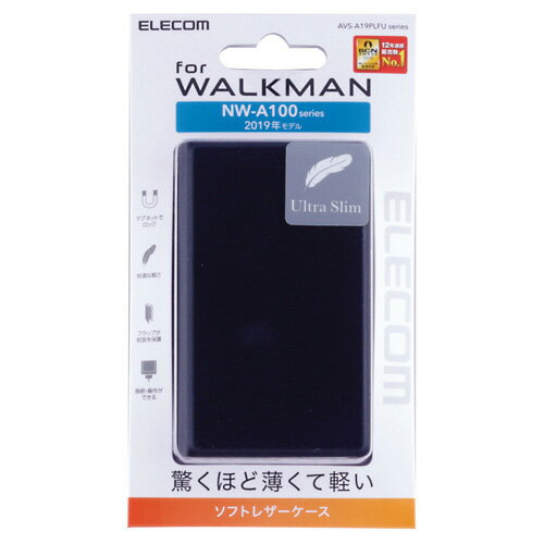 【送料無料】エレコム ELECOM SONY ウォークマン レザーケース 手帳型 NW-A100シリーズ A100TPS / A105 / A105HN / A106 / A107 ブラック AVS-A19PLFUBK▽▼