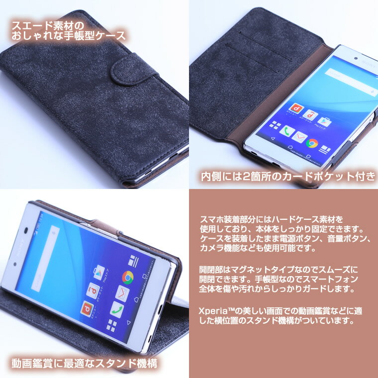 対応機種 ・XperiaZ4 (SO 03G SOV31 402SO) ・XperiaZ5 (SO 01H SOV32 501SO) ・XperiaZ5 Compact(SO 02H) ・XperiaZ5 Premium (SO 03H) 特長 ・おしゃれなレザー手帳型ケース手触りの良い材質を使い仕上がりケース、おしゃれデザイン、質もとても良く、想像以上に高級感のあふれる仕様となっております。