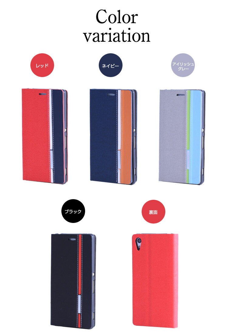 対応機種 ・XperiaZ3 (SO 01G SOL26 401SO) ・XperiaZ4 (SO 03G SOV31 402SO) ・XperiaZ5 (SO 01H SOV32 501SO) ・XperiaZ5 Compact(SO 02H) 特長 ・2トーンカラーのおしゃれな手帳型ケース ・手帳型なのでスマートフォン全体を傷や汚れからしっかりガード ・内側には1箇所のカードポケット付き ・スマホ装着部分には柔軟性のあるTPU素材を使用しており、本体をしっかり固定できます ・ケースを装着したまま電源ボタン、音量ボタン、カメラ機能なども使用可能 カラー レッド/ネイビー/アイリッシュグレー/ブラック 注意点 商品のカラーや素材感は、ご使用のブラウザの設定により、実際の商品のイメージと多少異なる場合がございます。